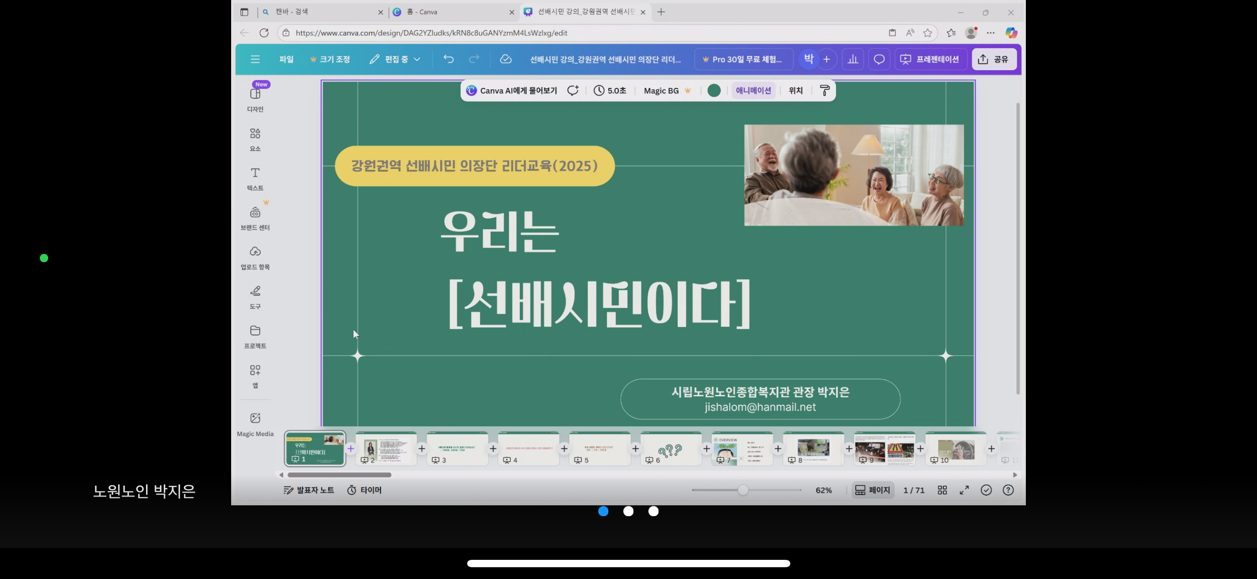 [소양강댐노인복지관] 인지향상통합프로그램 「소양호시니어해밀교실」 캠페인